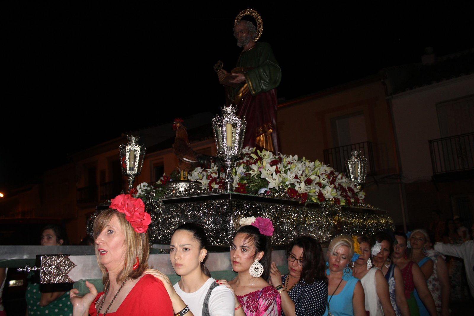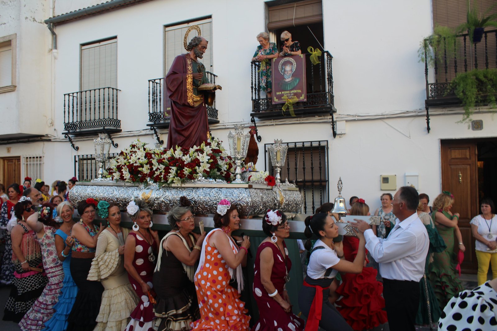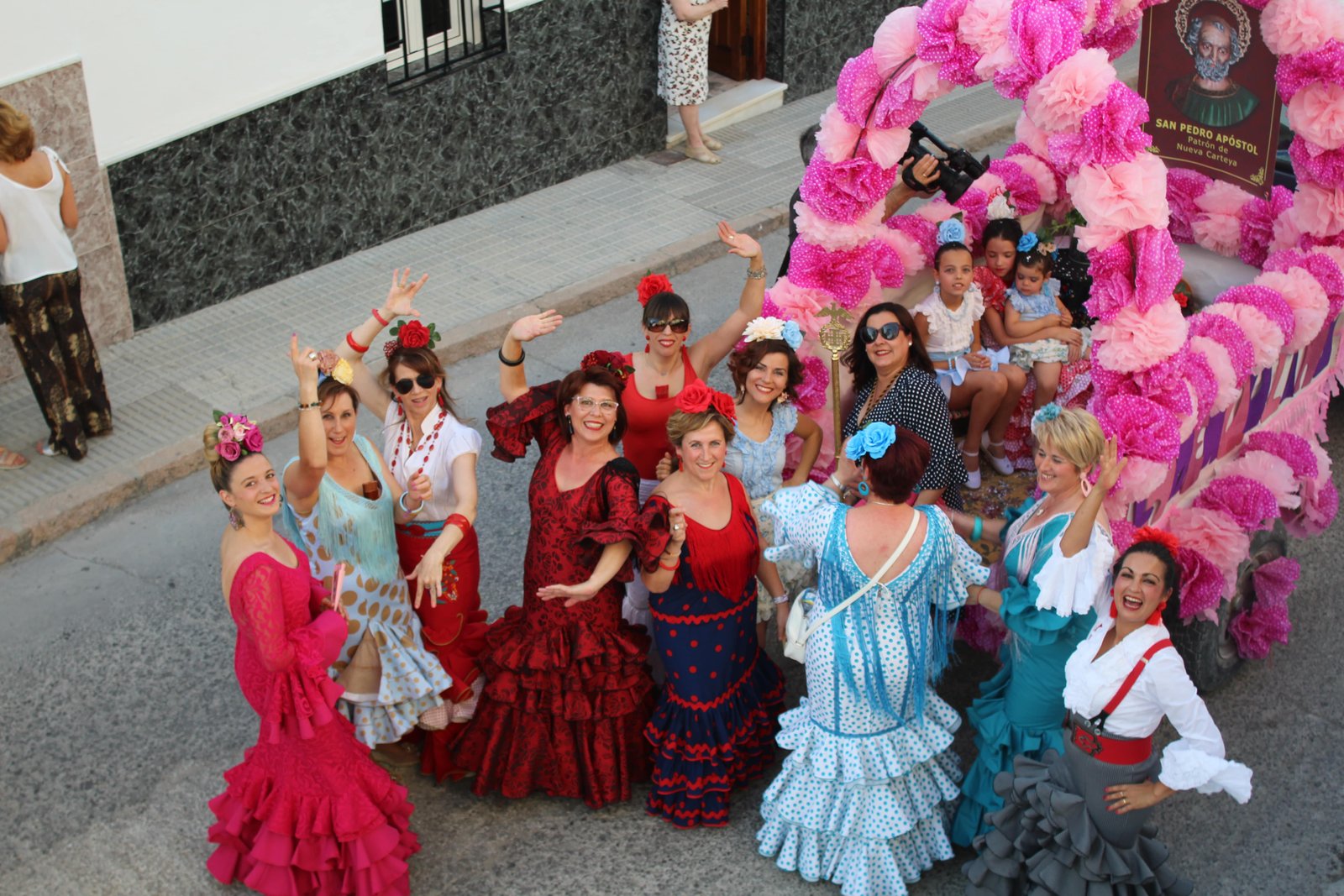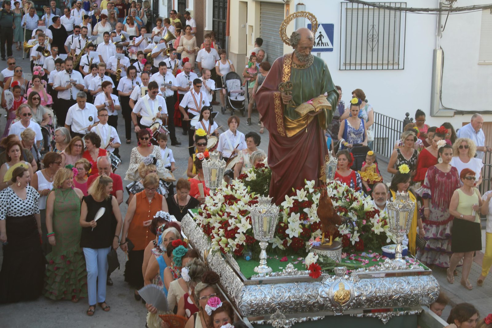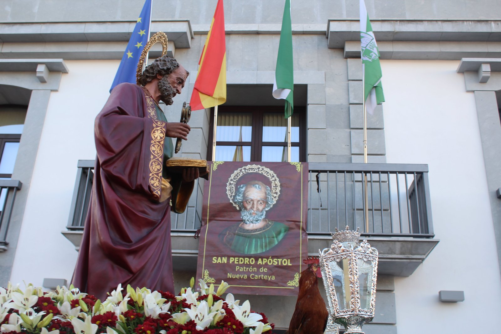 Nueva Carteya ha vuelto a celebrar sus fiestas en honor a San Pedro, patrón de la localidad. El pasado sábado, decenas de gitanas portaron desde las ocho de la tarde en sus hombros al apóstol. Estuvieron acompañadas, como viene siendo habitual, de la Sociedad Musical Banda de Música ‘Villa de Nueva Carteya’.