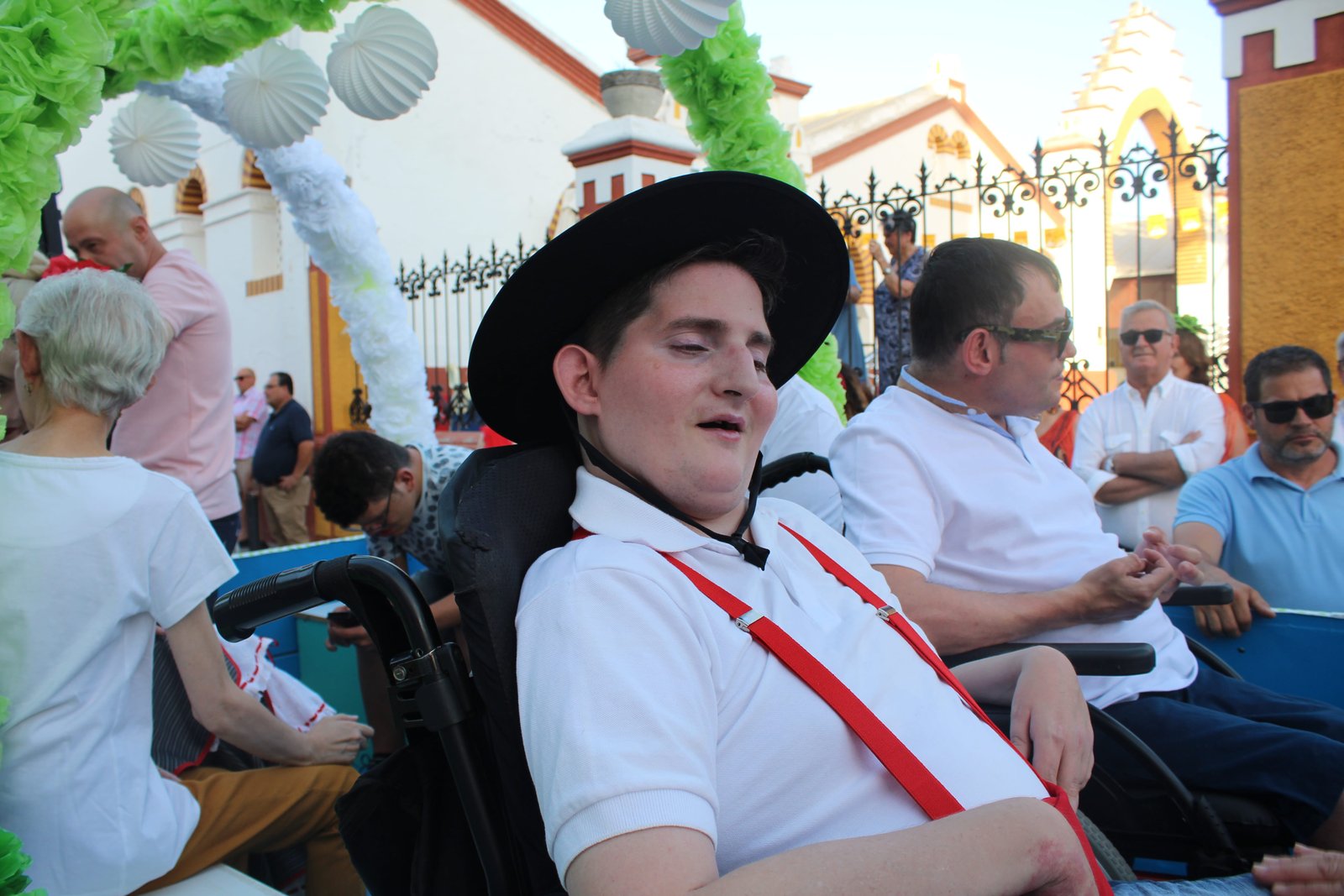 Uno de los usuarios de la asociación de personas con discapacidad ‘La Decisión’, Francisco, en la carroza. Foto: Brian Bujalance (InfoDiario).