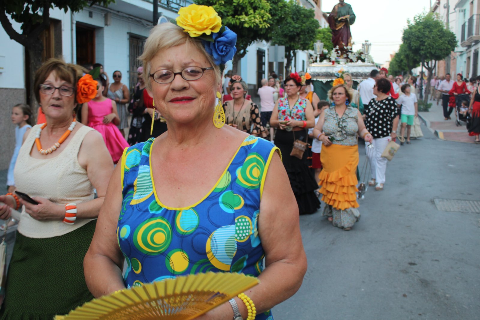 Parte de las costaleras vestidas de gitana que procesionaron al patrón por las calles de la localidad. Foto: Brian Bujalance (InfoDiario).