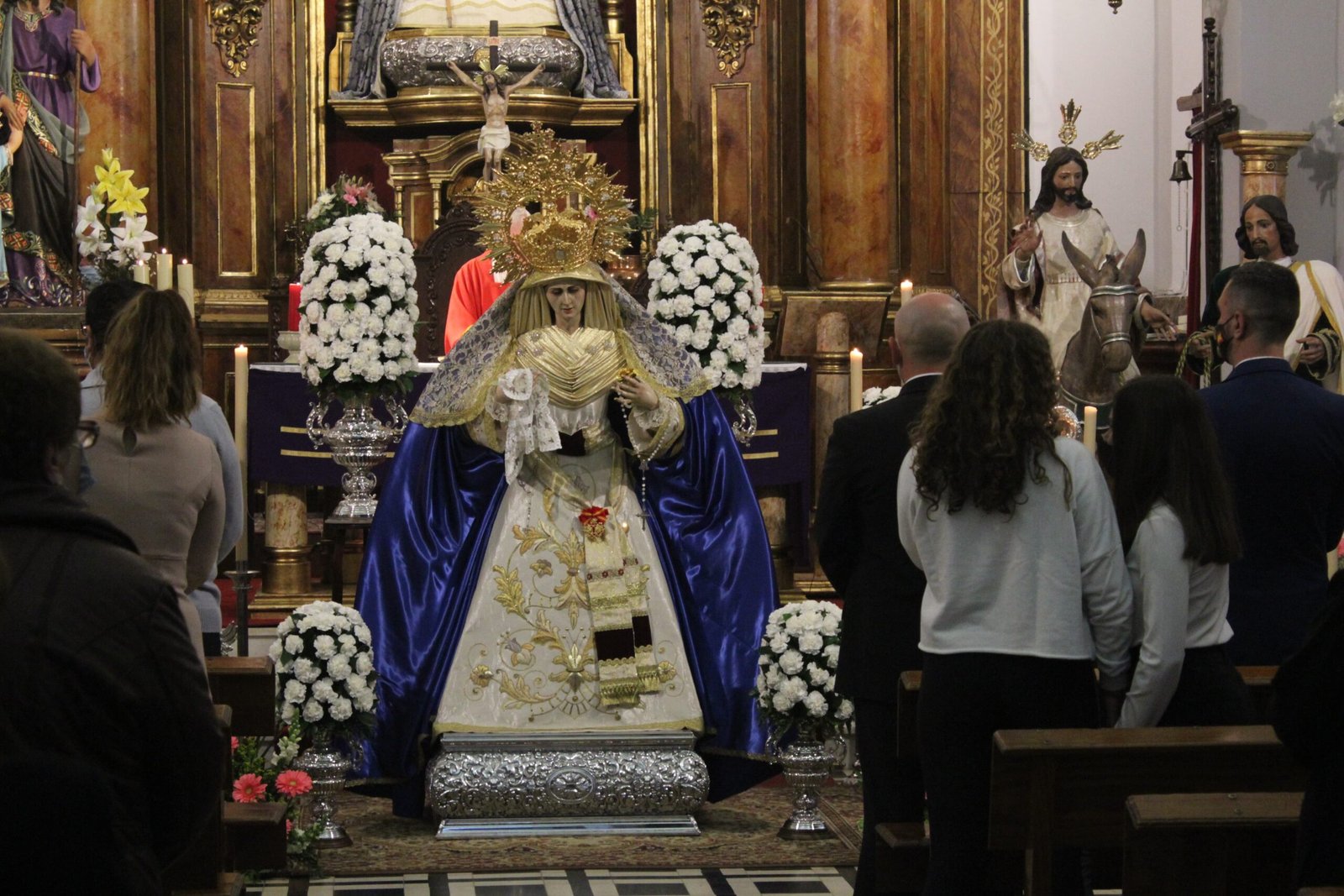 Este sábado previo al comienzo de la Semana Santa, la Iglesia de San Pedro de Nueva Carteya ha vivido, como comentó el párroco, el primero de los momentos de la Semana de Pasión: la presentación y bendición de María Santísima Virgen de la Estrella. Un centenar de personas se congregaron en el templo para ver a la titular del Domingo de Ramos en un acto emotivo donde los miembros de la Hermandad, a pesar de las restricciones y las mascarillas, mostraron su emoción y alegría.
