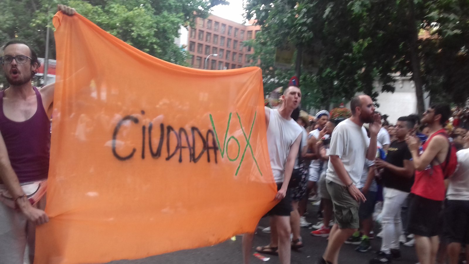 12. Pancarta reivindicativa contra Ciudadanos, que desfilaba justo detrás de ellos. (Foto: Brian Bujalance)