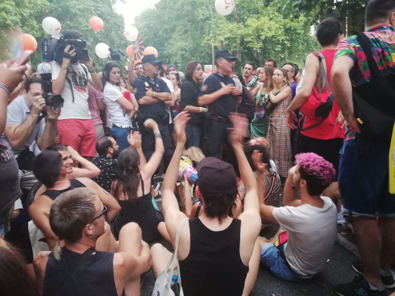 14. Varios manifestantes se sientan para impedir el paso a Ciudadanos. La policía pide que se levanten.